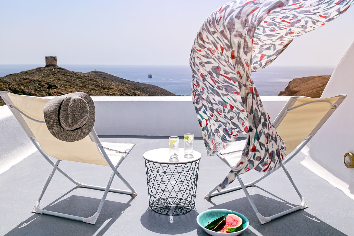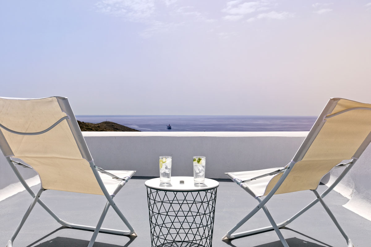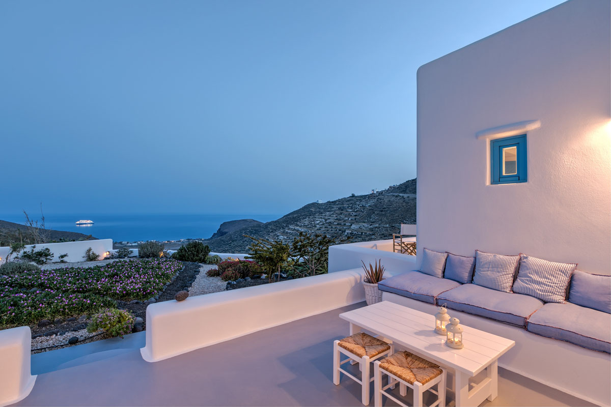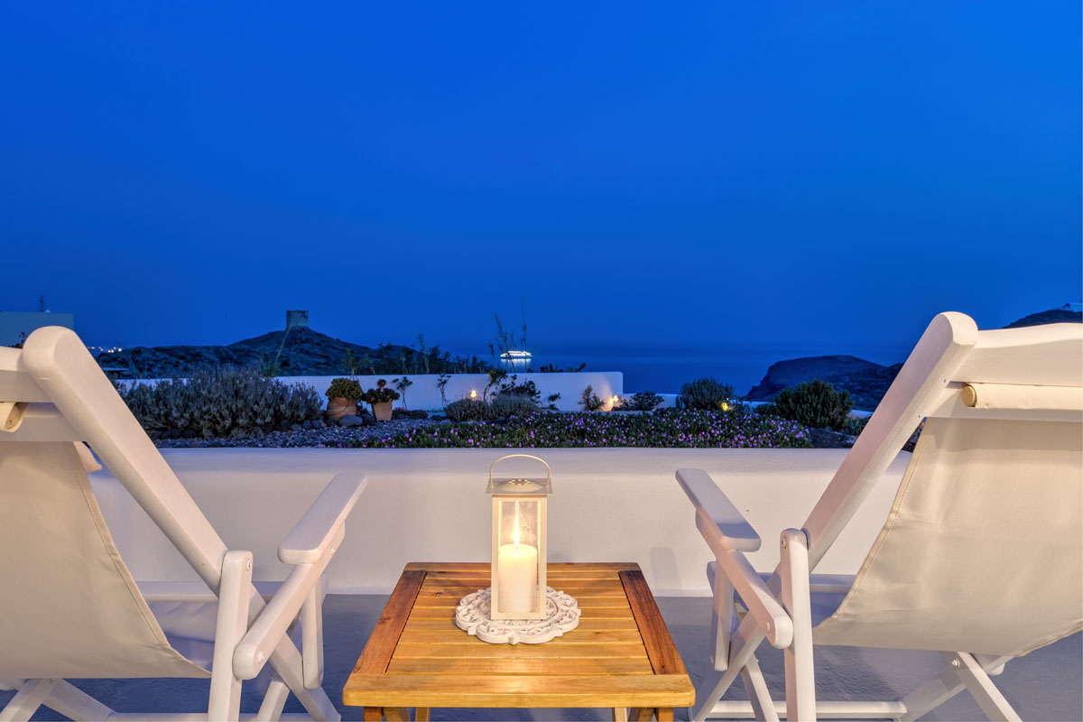 The carefully selected location of the illusion Villa offers unobstructed panoramic views of the endless blue of the Aegean Sea and the island of Crete as it is oriented towards the South.